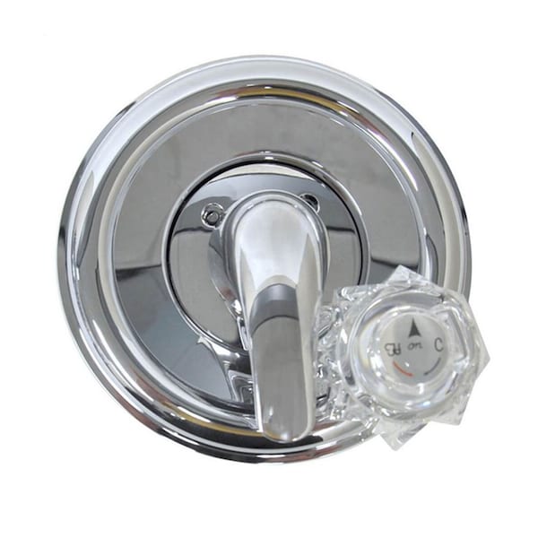 Thrifco Plumbing 4402604 Single Handle Valve Trim Kit in Chrome for Delta T/S Faucets. Features Replaces Danco 10003 DURABLE CONSTRUCTION CHROME FINISH SINGLE-HANDLE DELTA TUB/SHOWER TRIM KIT REPLACEMENT Fits 1300/1400 Delta Monitor Series Fits MultiChoice 13/14 series Fits Delta 600 series with and without a push button diverter. Replaces existing Delta trim kits: OEM# 29871 & 89277 COMPATIBILE WITH CARTRIGE STYLE SHOWER FAUCETS: Fits Delta Monitor 1300/1400 series cartridge OEM# RP 198804 Danco Model # 10347 Fits MultiChoice 13/14 series cartridge OEM# RP46074 Danco Model # 10664 COMPATIBILE WITH BALL STYLE SHOWER FAUCETS: Delta 212 ball OEM# RP212 Danco Model # 88120 Thrifco 4401883 Fits Delta Monitor 600 series Delta 70 ball OEM# RP770 Danco Model # 88119 Thrifco 4401884 IMPORTANT INSTALLATION TIP: To properly install this product, you need a minimum of a 3-1/2 inch opening in the wall for the offset portion of the trim plate to sit back in to ensure it sets flush to the wall. SHOWER TRIM KIT INCLUDES: 1 metal lever handle 1 clear acrylic handle, faceplate trim, screws, adapters and allen wrench to replace and install your shower valve trim.