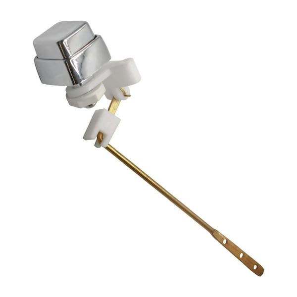 The push button trip side mount lever is designed to make flushing your toilet as simple as pushing a button. Constructed for side style toilet tanks, features a clean chrome finish handle that can match any bathroom and protect against corrosion. It comes with a durable 10-inch metal arm and a rust proof plastic spud and nut that can fit most front mount tanks.