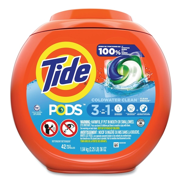 PODS Laundry Detergent, HE Compatible, Clean Breeze, 36 oz Tub, PK42