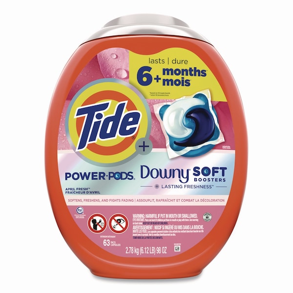 Get the Tide clean you trust with the softness you love from Downy. This Tide Power PODS laundry detergent with Downy softener combines your favorite laundry detergent with your favorite softener to make every load feel as good as it looks. Plus, this laundry detergent features the signature Downy April Fresh scent, so you can enjoy outstanding freshness with every wash. The Tide Power PODS are bigger than regular PODS: one Power POD equals two PODS for even more clean that tackles 100% of common stains, even in cold water. Toss in the Tide Power PODS with Downy before clothes to get the most out of your Tide laundry detergent. Experience the power of America's number one trusted detergent brand and the softness you love with the Tide Power PODS with Downy.