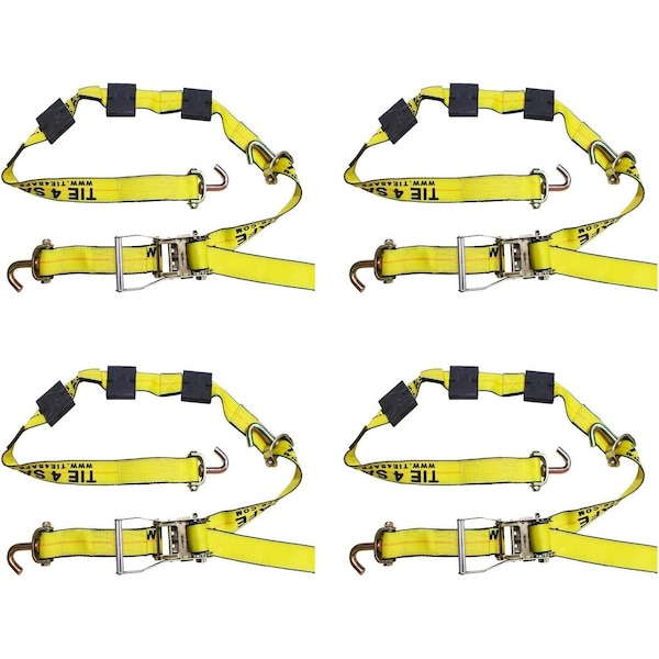 Car Tie Downs w/ Swivel Hooks & Ratchet Buckle & Tire Grip