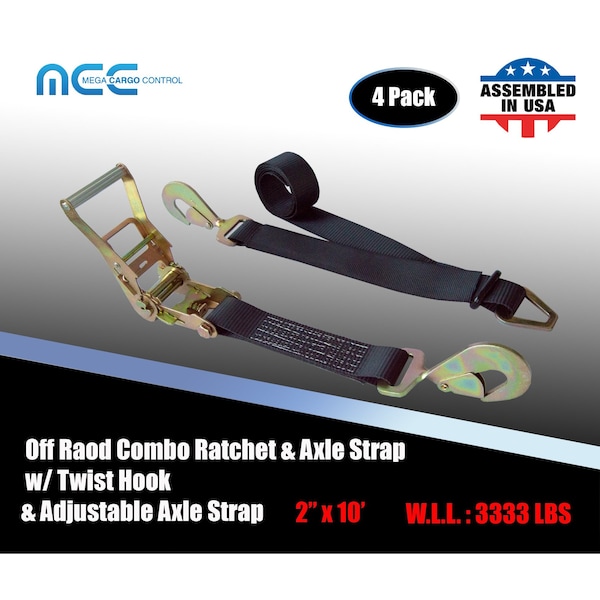 Axle Ratchet Tie Down Strap w/ Snap Hook Race Car Hauler Trailer Flatbed Black, 4PK