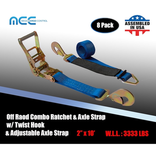 Axle Ratchet Tie Down Strap w/ Snap Hook Race Car Hauler Trailer Flatbed Blue, 8PK