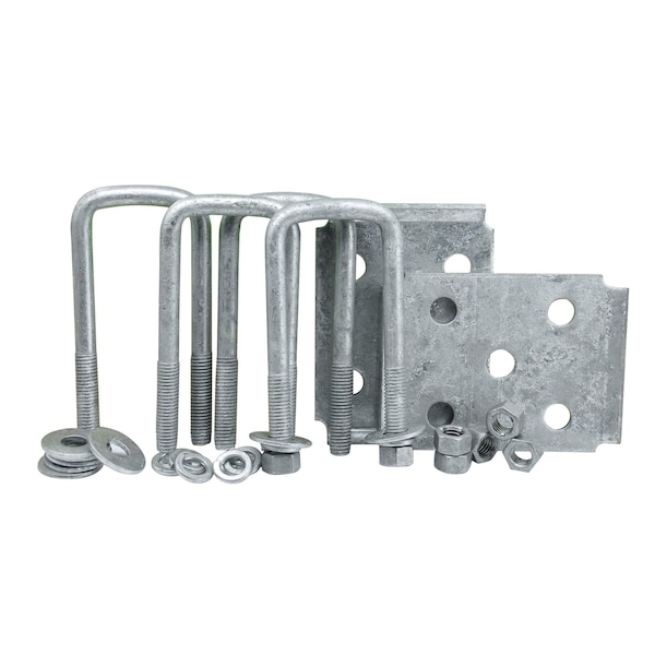 Each kit contains: 4 U-Bolts, 8 Locknuts, and 2 Five hole tie plates. Made of quality galvanized material for optimal durability and performance. Designed for quick and simple installation.
