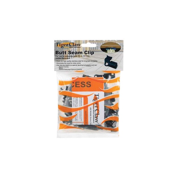 Tiger Claw butt seam clip is designed specifically for butt seams, eliminating the need for additional joists or additional blocking. This clip is a mirror image of the TC-G which allows you to install two clips per joist at the butt seam highlights color black oxide designed for butt seam applications when building with the TC-G hidden fastening system made of 304 grade stainless steel.