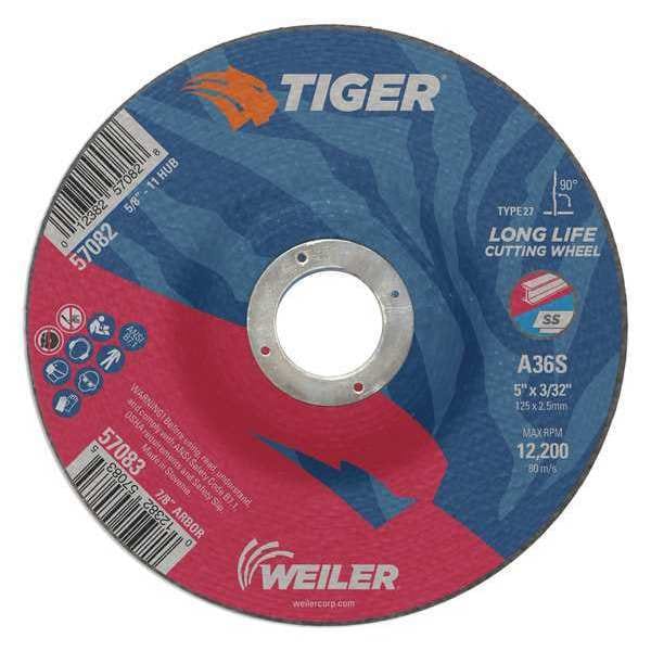 Cutting Wheel, Type 27, 5 in Dia, 0.0938 in Thick, 7/8 in Arbor Hole Size, Aluminum Oxide