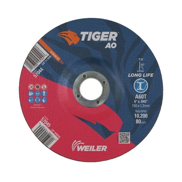 Cutting Wheel, Type 27, 6 in Dia, 0.045 in Thick, 7/8 in Arbor Hole Size, Aluminum Oxide