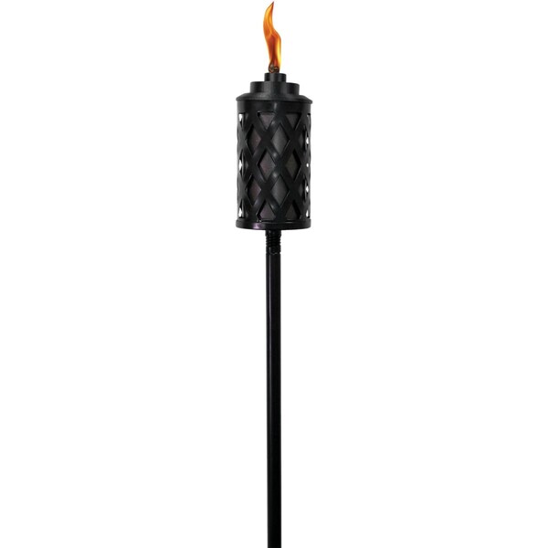 Urban metal patio torch gives natural light ambience and has a stylish black and bronze finish for an attractive addition to any backyard or patio. 12 Oz. Easy Pour wide mouth canister delivers up to 5 hours of burn time and makes refilling easier with fewer spills and less mess.