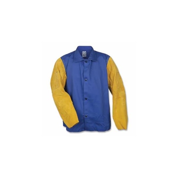 Flame Resistant FR7A/Cowhide Welding Jacket, L, Blue