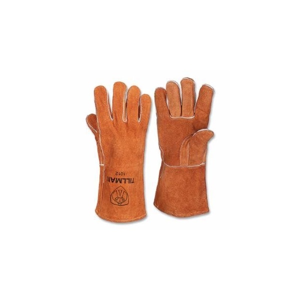Stick Welding Gloves, 1012B, Split Cowhide Cotton, Large, Brown, 14 in Cuff, 12PK