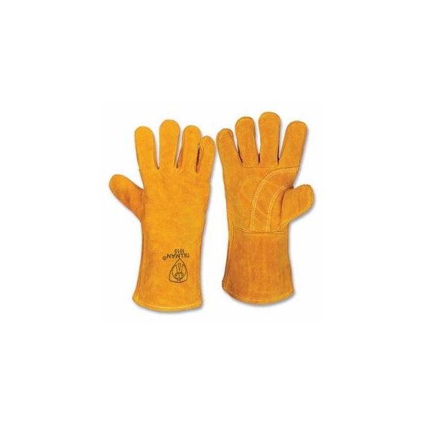 Stick Welding Gloves, 1015, Slightly Select Shoulder Split Cowhide Palm/BOH/Cuff, Lg, Bourbon Brn, 14 in L Cuff