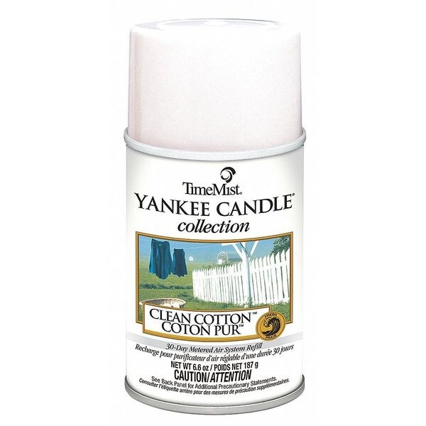 Metered Air Freshener Refill, Fragrance Clean Cotton, Aerosol Canister, Coverage 6,000 cu ft, Clear/Yellow, Length 2 11/16 in, Width 2 11/16 in, Height 5 1/2 in, Package Quantity 12