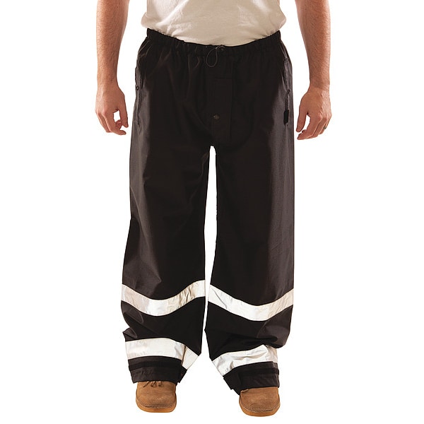 High Visibility Rain Pants, Polyurethane, 32 in Inseam, Drawstring Closure, Black, Size 2XL