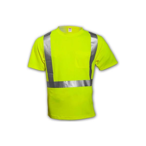 Short Sleeve Hi-Vis T-Shirt, Class 2, ANSI/ISEA 107 Type R Class 2, Birds Eye Polyester, 5X