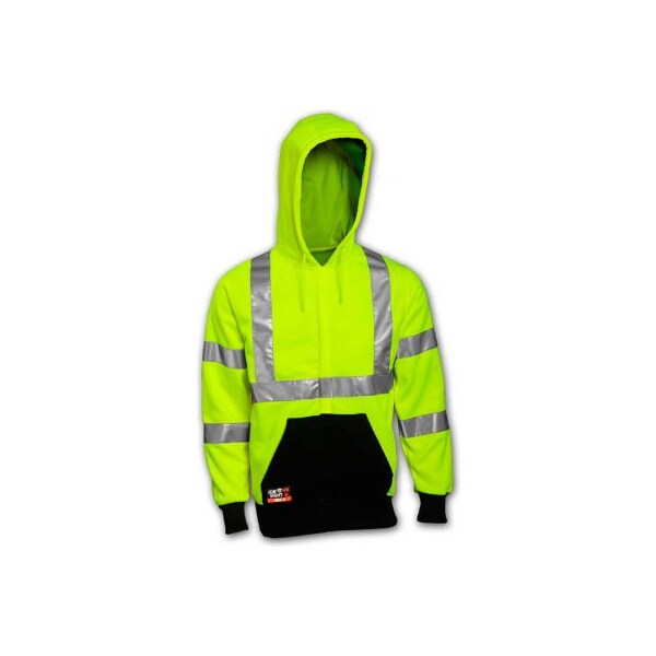 Tingley Class 3 FR Hi-Vis Hooded Sweatshirt, Fluorescent Yellow Green/Black, 4XL