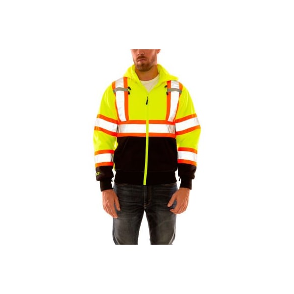 Tingley Hi Vis Sweatshirt, Detachable Hood, Zipper Closure, 2 Pockets, Fl Lime, 2XL