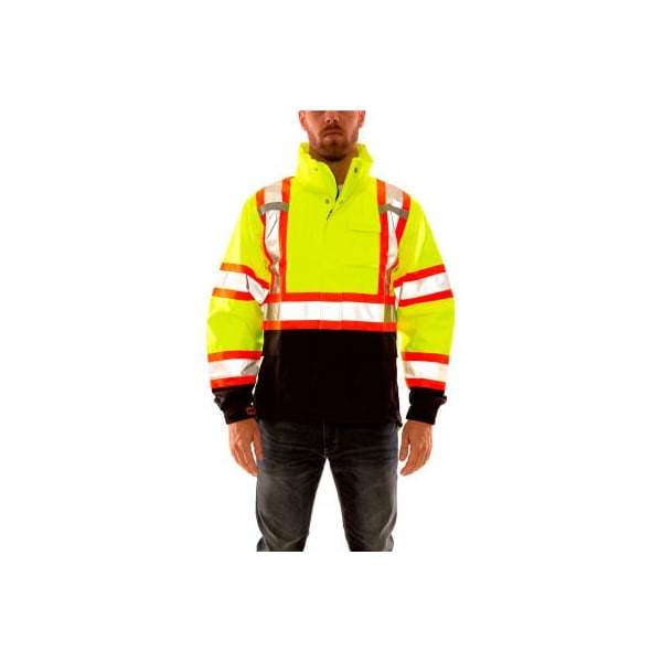 Tingley icon jacket - fluorescent yellow/green/black - attached hood, 2xl the icon premium ansi and csa compliant breathable and high visibility outerwear - polyurethane on 300 denier polyester. Engineered to provide superior comfort and safety in the toughest work environments. Ideal applications: for use in environment