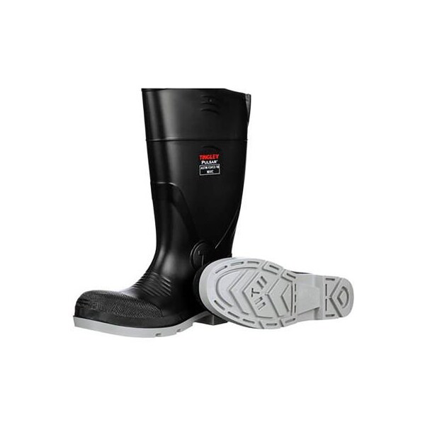 Tingley pulsar knee boot, composite safety toe chevron plus, 15"h, blk/gray, size 8 15" ht. - composite safety toe (cst). Meets astm f2413 m/i/c for safety toe caps. Injection molded construction for 100% liquidproof protection. Soft and flexible upper material for all day working comfort. Calf relief expansion (cre) expands up to 1.5 inches for more calf comfort. Cutline at 12" to facilitate fast and clean height modification. Chevron plus treads provide excellent slip resistance on wet contaminated surfaces and have more cleat material than standard chevron designs for longer service life. Long lasting outsole provides good abrasion and chemical resistance, yet is soft enough for excellent slip resistance and walking comfort. Beveled heel for reduced back and leg strain. Tread wear indicators (twi) in the outsole on forefoot and heel show when half the tread has worn away. Removable insole: contour cushioned insole absorbs moisture and shock for outstanding comfort.