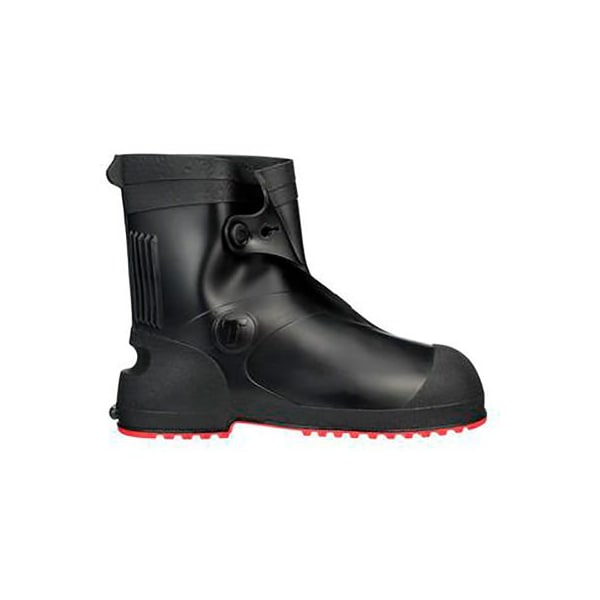 Workbrutes G2 PVC Overshoe, Size Medium, 10"H, Cleated Outsole, Black With Red Sole
