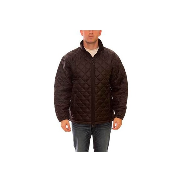 The black quilted jacket can be worn year round for all season comfort. Black 210t polyester. 180g quilted insulation provides warmth and comfort. Overhead shoulder design for complete freedom of movement. Storm fly front with zipper front closure seals out wind. Front hand warmer pockets with zipper closure. Adjustable elastic draw cord at waist for easy adjustment. Dark color helps conceal dirt. Attachment points for use asliner in sync jacket system. Product ships on hangers.