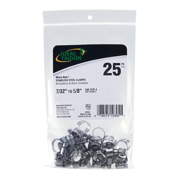 0.21 in. Hose Clamps Stainless Steel, 25PK