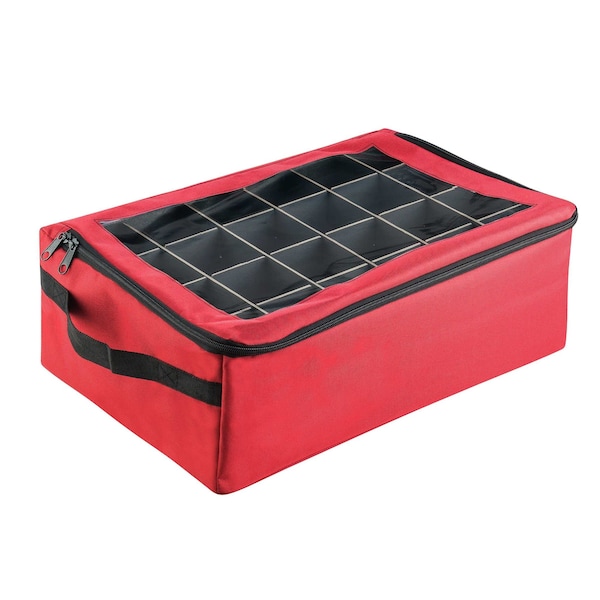 The Ornament Storage Container by Tiny Tim Totes makes it easy to store away those special and irreplaceable Christmas bulbs and decorations. This rectangular-shaped storage bin with lid has adjustable dividers that can be arranged to create up to 48 individual compartments insides its two removeable trays. The folding storage box features a sturdy construction, stitched seams, side handles, a stackable design, and a zippered lip with a clear window for easy identification. This red storage bin with dividers is designed specifically to protect your heirloom Christmas tree ornaments, keeping them safe between holiday seasons, year after year. IMPORTANT: Tiny Tim Totes is committed to providing the consumer with the absolute best price and value on all of our products. NOTE: This is an exclusive product of Tiny Tim Totes and ONLY Storage Bins by Tiny Tim Totes are GUARANTEED to be genuine. Avoid buying counterfeit products and transacting with unauthorized sellers.