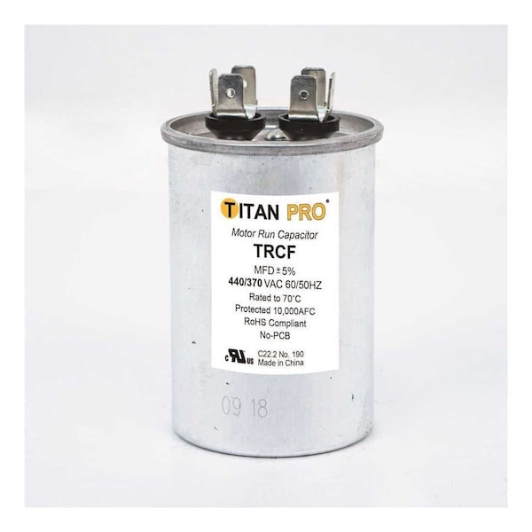 When you need a motor run capacitor that delivers the extended life your customers demand and the value you desire, you know itTMs time to go Pro. TITAN Professional Grade Motor Run Capacitors get the job done by outperforming standard motor run capacitors of similar value by 83%. Built to the toughest international compliance standards for AC motor run capacitors.60,000 hours operational lifeBuilt to the toughest international standards for AC motor run capacitors including EIA-456-A and IEC100% electrical testingHeavy-edged metalized polypropylene film is used for the dielectric
