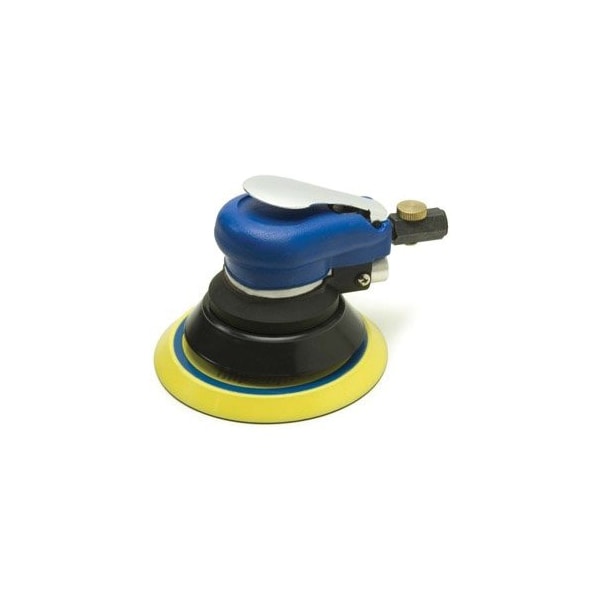 Low profile design with ergonomic grip. Random orbital action assures a swirl-free finish. Variable air speed control 55mm orbit for rapid material removal. 6in diameter premium urethane vinyl face pad. For pre-paint preparation, sanding, f