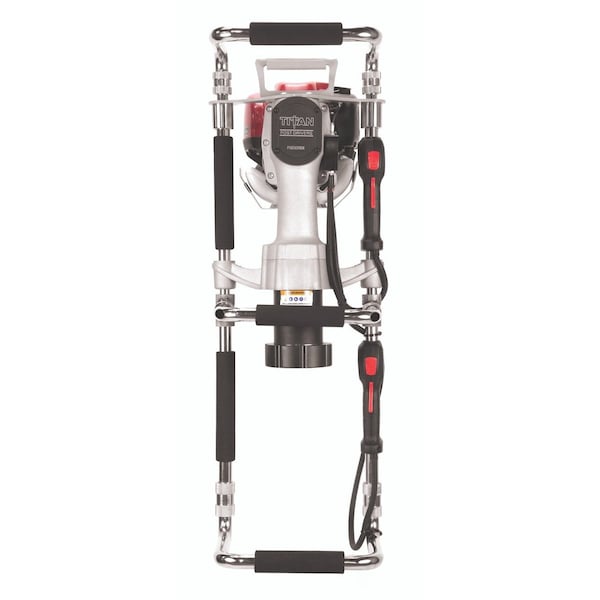 The Titan 15'' extension handle kit can be added to the PGD2000X, PGD3200X or PGD3200XPM Titan Contractor X Series post drivers for driving tall, hard-to-reach posts. The extended side handles with throttle and auto-reset on/off control provide the user with comfort, balance, and safety when driving a post-up to 8' tall. The throttle junction box and wire harness allow for dual-throttle and on/off control. The center handle allows user to apply down pressure while driving and improves handling of the driver when lifting and serves ideally when carrying. The kit includes 15'' extension handles, formed center handle with cushion grip, lower formed handle with cushion grip, throttle, wire harness, throttle junction box, knurled fittings, hardened steel bolts and Nord-Lock washers for a strong, tight connection.