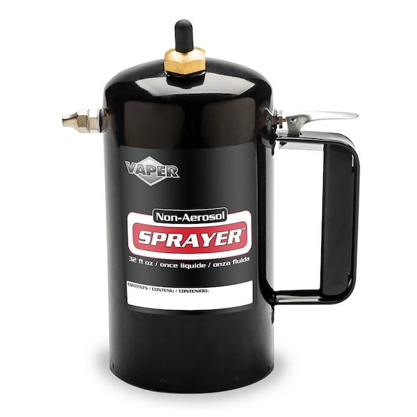 The Vaper Non-Aerosol Spot Sprayer provides a consistent spray of various bulk chemicals while eliminating the dangerous and harmful propellants, making it eco-friendly. This refillable sprayer holds up to 32 fluid ounces of liquid and has an operating pressure range of 80 to 150 PSI. Replacement components are available, #19420. This sprayer is best used or bulk chemicals such as acetone, thinner, solvents, penetrating oils, degreasers, lubricants, and cleaners. Do NOT use with flammable propellants, paint products, acid solutions, or water based liquids.
