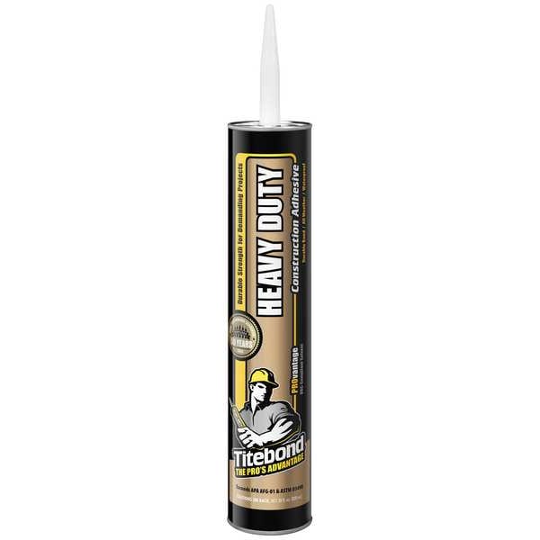 Construction Adhesive, Adhesive Color Brown, Application Method Dispensing Gun, Chemical Base Thixotropic Masitc, Container Size 28 fl oz, Container Type Cartridge, Features Bridges Gaps, Eliminates Squeaks, Reduces Nailing, Strong Fast Grab, Gap Fill 0.0625 in, Interior/Exterior Interior/Exterior, Working Time 15 min, VOC Content Weight Percentage 3.91 Percent, Water Resistance Waterproof, VOC Content Weight Less Than 50 g/L, Standards ASTM C557, ASTM D3498, APA AFG-01, VOC Compliant