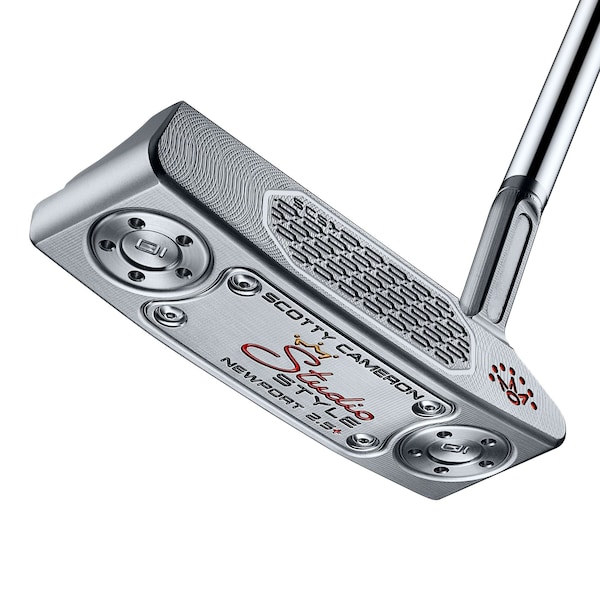 The Titleist 2025 Scotty Cameron Studio Select Newport 2.5 Plus Putter features a slightly wider Newport 2 shape with an I-beam-style jet neck for added toe flow. It includes a Studio Carbon Steel face insert, improved damping technology, and chain-link face milling for a softer sound, superior feel, and precise feedback. Integrated 6061 aircraft-grade aluminum sole plate redistributes weight to the perimeter for increased MOI and balance. Finished with signature red cherry dots, it comes with a custom Full Contact Slim grip, shaft band, and headcover.