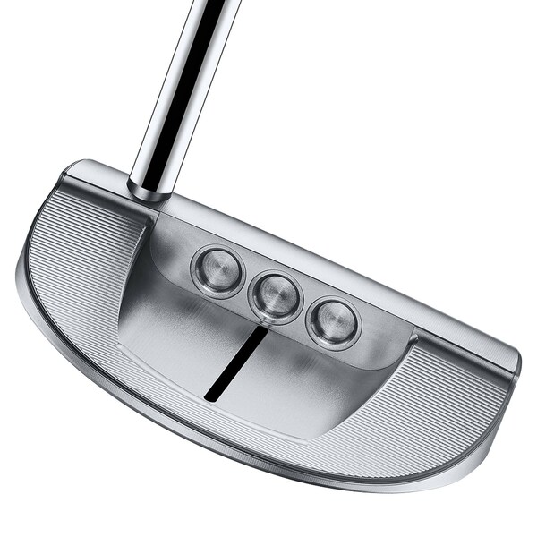 With its rounded compact mallet shape, the Super Select GOLO 6 is designed with a mid-bend shaft for nearly face balanced performance. The GOLO 6 has an integrated sole plate machined from 6061 aircraft aluminum. Seamlessly fused to the body, this configuration allowed Scotty to design more solid stainless steel into the face and perimeter, increasing MOI, balance and feel. The signature cherry bombs in the back pocket have a refined, machined metal finish, while the stepless steel shaft comes equipped with a textured Pistolero Plus grip.