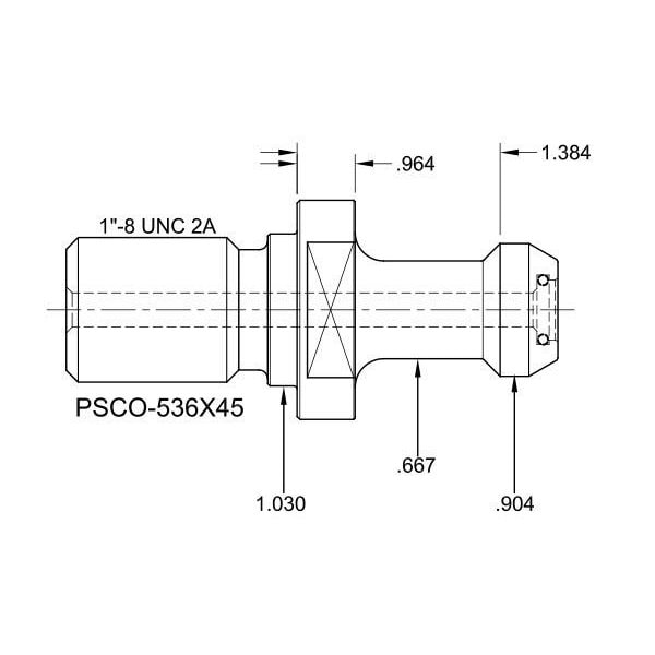 PSCO-536X45, CAT50 Coolant Through Retention Knob with a 45 Degree angle