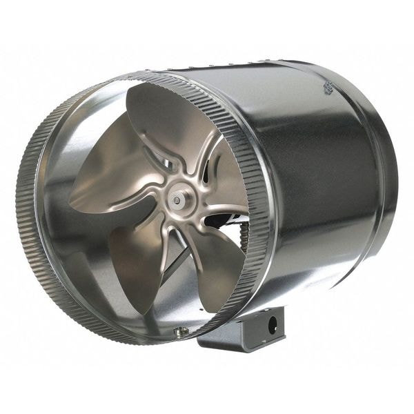 In-Line Duct Fan, For Fan Type Tubeaxial, Airflow @ 0.000 in SP 875 cfm, Duct Diameter 12 in, Motor Output Power 21.3 W, Motor IP Rating Not Applicable, Nameplate Voltage 120V AC, Phase 1, Number of Speeds 1, Overall Diameter 12 in, Overall Height 15 5/8 in, Overall Width 12 in, Application General Purpose, High-Efficiency Motor No, Housing Material Galvanized Steel, Motor Speed 1,500 RPM, Includes External Junction Box for Easy Wiring, Maximum Inlet Air Temperature 150 Degrees F