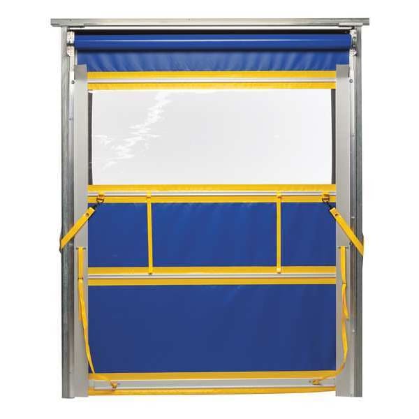 Item Curtain Door, Curtain/Door Material 22 oz Coated PVC, Curtain/Door Operation Spring Assist Roll Up, Opening Height 8 ft, Opening Width 8 ft, Height 8 ft, Width 8 ft, Curtain/Door Mounting Under Header Mount, Color Blue, Yellow, Includes Screen Panels, Wind Load Rating Not Rated for Wind
