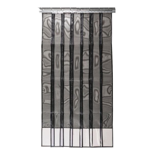 Strip Door, Mesh, Strip Width 8 in, Strip Length 7 1/4 ft, Opening Height 7 ft, Opening Width 3 ft, Black, Number of Strips 6, 50 Percent Overlap, Strip Material PVC Coated Polyester, Strip Thickness 0.011 in, Temp. Range 0 Degrees to 150 Degrees F, Mounting Hardware Material Steel, Strip Application Insect Screen