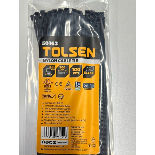 12/300mm x 3.6mm Zip TieTensile Strength: 180N40lbsMin Bundle Diameter: 3.5mmMax Bundle Diameter: 84mmRated For Outdoor Use