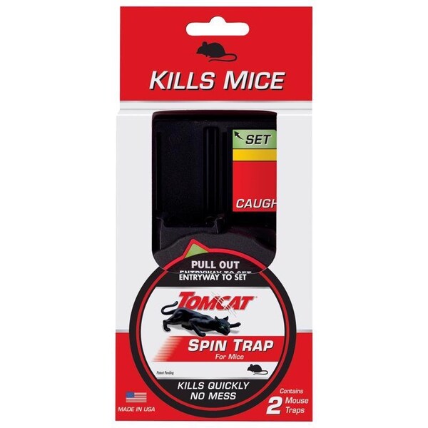 Number in Package: 2, Product Type: Animal Trap, Safe for Pets: No, Sub Brand: Spin Trap, Trap Type: Kill Trap, Brand Name: Tomcat, Small, Animal Type: Mice, Depth: 3.13, Height: 8.5, Width: 4, Indoor or Outdoor: Indoor and Outdoor, Disposable or Reusable
