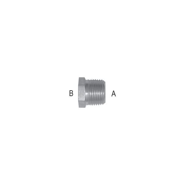 Male Pipe to Female Pipe Reducer Bushing: 3/4-14 A, 1/2-14 B
