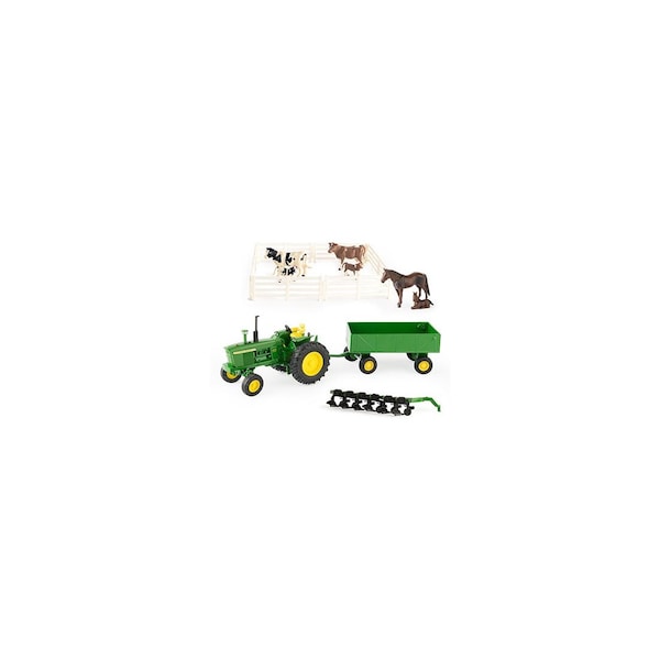 John Deere, 1:32 Scale, Die Cast Value Farm Set, Die Cast Tractor, Wagon & Plow, Fencing With Cows & Horses, Age Grade 8 Years +.