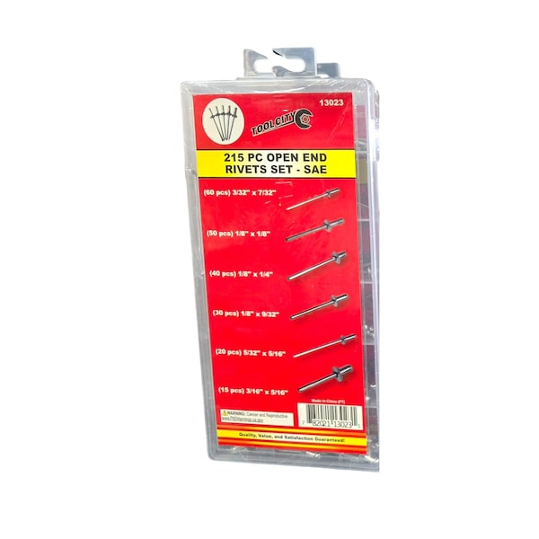 "Discover the Versatility of Our 300-Piece Open End Rivets Set - SAE Unlock the full potential of your craft and repair projects with our meticulously crafted 300-Piece Open End Rivets Set. Precision-engineered and designed for seamless application, this set is an essential addition to any toolbox, catering to professionals and DIY enthusiasts alike. Comprehensive Variety: Featuring 300 pieces, this set ensures you have the right rivet size for every requirement. Whether you're working on metals, plastics, or fabrics, find the perfect fit for all your riveting tasks. High-Quality Construction: Made from durable materials, these rivets promise exceptional strength and longevity, providing robust fastening that withstands various environmental conditions. Effortless Application: Designed with an open end, these rivets can be applied quickly and easily without the need for specialized tools, streamlining your workflow. Versatile Compatibility: Ideal for automotive, aviation, and household applications, this set adapts to a wide range of projects, enhancing functionality with reliable performance. Invest in your projects with this versatile rivet set, engineered for efficiency and durability to deliver professional-grade results every time."