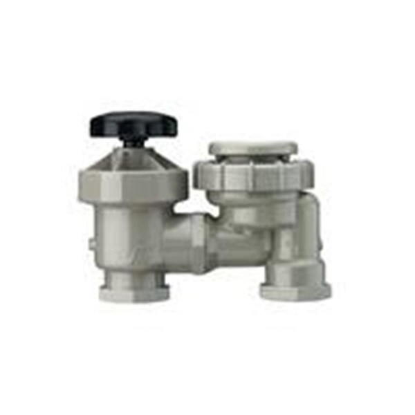 Built-in atmospheric backflow preventer protects household water supply from possible contamination. Manually activates zone sprinklers with twist of handle.