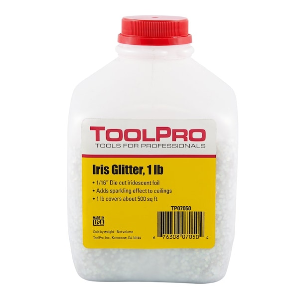 Add a sparkling effect that accents a paint color of any ceiling. May be applied by gun or thrown by hand while wearing safety glasses. Apply to wet or tacky surface.Add glimmer and sparkle to the topcoat of any ceiling.1/16 in. die cut foil.Clear Irridescent color.1 lb. covers 500 sq. ft.