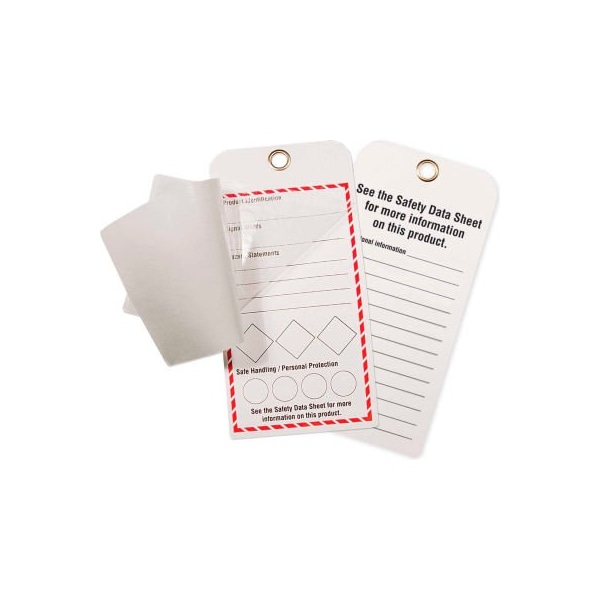 Incom ghs1043 ghs style self-laminating workplace tags, blank, 25/pack make your own ghs compliant workplace tags to clearly identify chemicals stored in your workplace. Clear lamination offers extra durability.