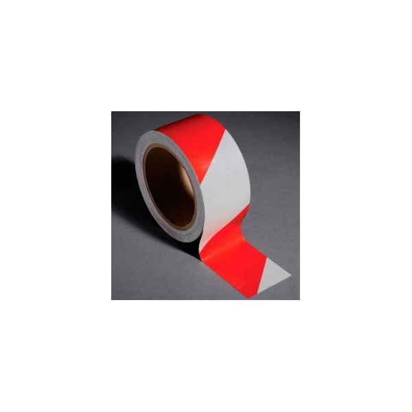 INCOMĀ® 1 ROLL - SAFETY TAPE REFLECTIVE STRIPED RED/WHITE, 2"W X 30'L REFLECTIVE WARNING TAPE STRIPED PRESSURE SENSITIVE ADHESIVE TAPE IS IMPERVIOUS TO WEATHER, TEMPERATURE AND ABRASION. EASY TO APPLY. STICKS TO ANY CLEAN, DRY SURFACE: CONCRETE, WOOD, METAL, PAINT, ETC. SECTION OFF AISLES, LANES AND SAFETY AREAS. EYE-CATCHING SOLUTION TO HELP IDENTIFY POTENTIAL HAZARDOUS AREAS. USE ON FIRE DOORS, HANDRAILS, ELECTRICAL EQUIPMENT, LOW BEAMS, LOADING DOCKS, WAREHOUSE FLOORS, ETC. REFLECTIVE WARNING TAPES ARE 10 YD. ROLLS. HELPS YOU MEET OSHA REQUIREMENTS.