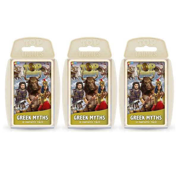 Top Trumps takes you to an exciting, ancient world of heroes, gods and monsters in the brand new Greek Mythology deck. Will you play with foul creatures like the snake-haired Medusa and the one-eyed Cyclops or have brave heroes like Perseus and Odysseus in your hand of cards? Compare the Bravery, Strength and Wisdom of everyone from Icarus to Zeus as you read the mystical tales of adventure and magic that have been passed down from generation to generation. Whose father tried to eat him? Who stole the secret of fire from the Gods and how did the Minotaur come into this world? Find with Greek Mythology Top Trumps! Sold as a pack of 3 identical card games.