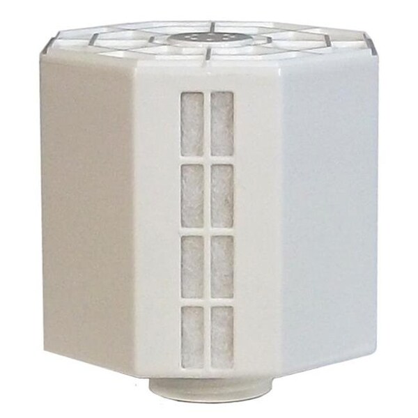 The ION Exchange Replacement Filter for the Dual Mist Humidifer. The purpose of the filter is to "soften" the tap water removing minerals. The ION exchange filter demineralizes and treats water to remove scale-forming calcium and magnesium from hard water. This prolongs the life of the ultrasonic generator and prevents white dust particles to deposit into the air. It is recommended to change the Ion Exchange Filter once every 6 months.