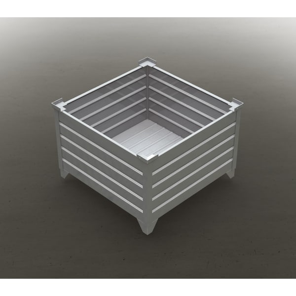 Tare Weight: Approx. 192 lbs., Weight Capacity: 4,000 lbs., Holding Capacity: 24.5 Cu. Ft., Static Stacking: 5 High & 3 high (86”O.A.H.) in standard shipping trailer, Overall Outside Dimensions: 43.5”L x 43.5”W x 29.5”H, Usable/Clear Inside Dimensions: 40.75”L x 40.75”W x 22.38”H, Outside Wall to Outside Wall Dimension: 42”W x 42”L, Outside Wall Height: 24”, gray industrial enamel applied direct to metal, inside & out not including underside. All containers are built-to-order (stitch welded), stack-able steel corrugated storage containers that ship as is ready to use, there are no pallets or packaging involved. Topper containers are ideal when floor space is at a minimum and pallet racking is not available. Fork trucks are the most common equipment used to handle the containers as well as pallet trucks (27” wide), except on containers with a length or width smaller than 44.5” O.D. The containers are rated at a 4,000 lb. weight capacity and can be stacked up to 5 high even while holding 4,000 lbs. of bulk material in each container. These containers will hold most materials but will NOT hold liquids OR material smaller than a 5/8” ball bearing. They will also hold up in most industries and environments but do have limits when it comes to holding heated materials or dropping heavy materials into them. Material make-up for the containers are as follows; 13ga. corrugated plan carbon steel sides, 12ga. corrugated plan carbon steel bottom, corner assemblies which hold the sides and bottom together consist of 2"x2"x3/16" Angle Iron, 7ga plain carbon steel formed top stacking targets and 7ga plain carbon steel formed 4" High Legs. All Topper containers are designed, fabricated and welded in the U.S.A.