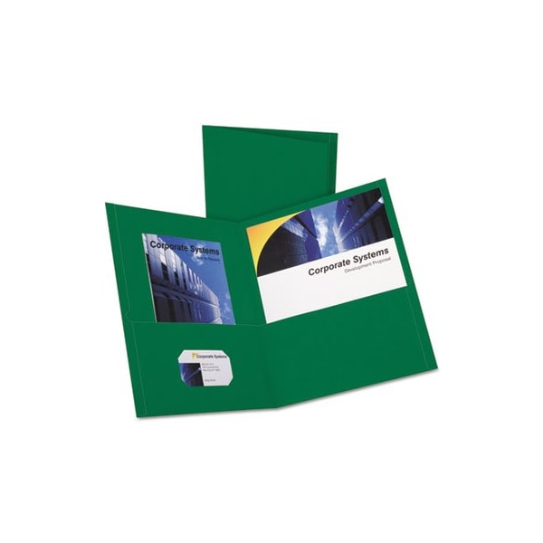 Oxford Two Pocket Folders provide easy color coded organization. Textured paper reduces marks and smudges. Folders hold up to 100 letter size sheets. Great for schoolwork, small business and home organization. Front Cover Colors: Hunter Green; Color Family: Green; Back Cover Colors: Hunter Green; Sheet Size: 11 x 8.5.